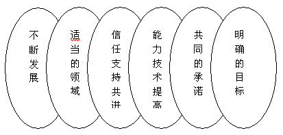 至此,可以对团队的内涵作如下理解:团队是由一些因共同目标而结合起来、需要相互支持、相互协作的个体组成的。团队的组成基于实现一个共同的目标,从而被赋予必要的技术组合、信息、决策范围和适当的酬劳。他们为实现共同目标而相互协力工作并着眼于取得工作成果。